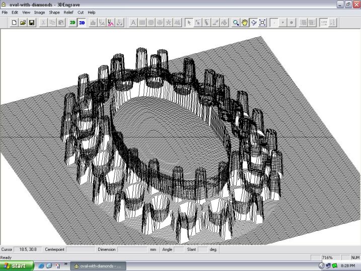 Here you can see a wire frame image of your relief you have created. Once you have your design completed export a .dfx file to open in
