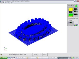 Below are screen shots that represents five projects that were all designed with 3D Engrave, the tool path to mill the wax calculated by Modela Player and a 3d rendering created by Virtual Modela. The wax models were then cut with our 3 axis mill. These programs are bundled with two others which are include in the price of our system.